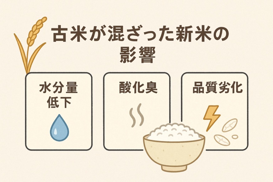 古米が新米に混ざると、味や品質に影響が出ることがあります。具体的な影響は以下の3つです。