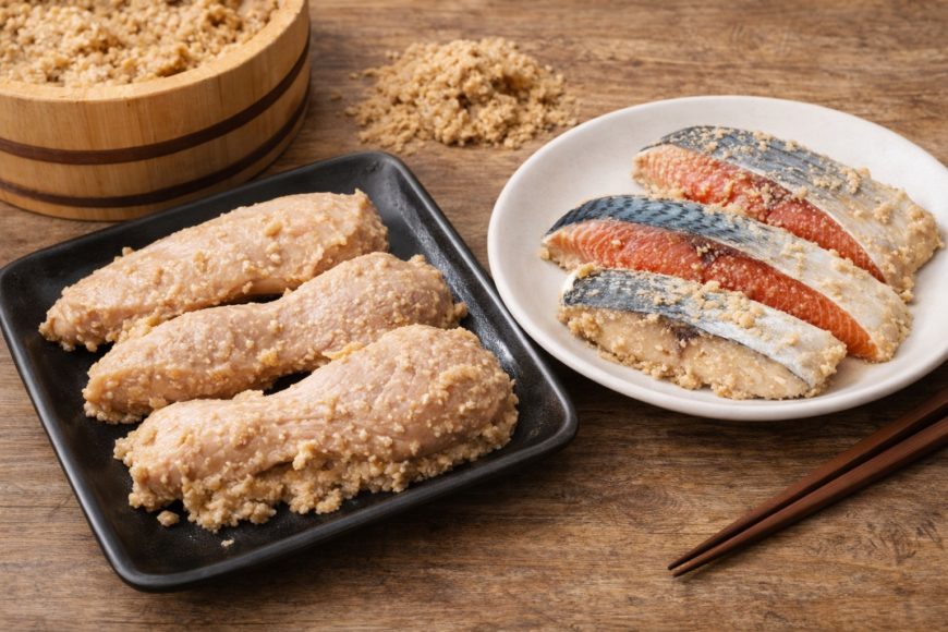 肉や魚のぬか漬けは風味豊かに仕上がりますが、扱いには十分な注意が必要です。特に生の肉や魚は、普段使っているメインのぬか床に直接入れず、取り分けたぬか床を別管理で使うのが基本です。