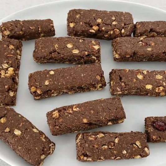 混ぜて焼くだけのシンプルな工程で、噛み応えのあるプロテインバーが作れます。